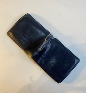 The External part of this wallet was chewed by a dog, we removed the old damaged leather and replaced it with new one in a matching grain and colour.